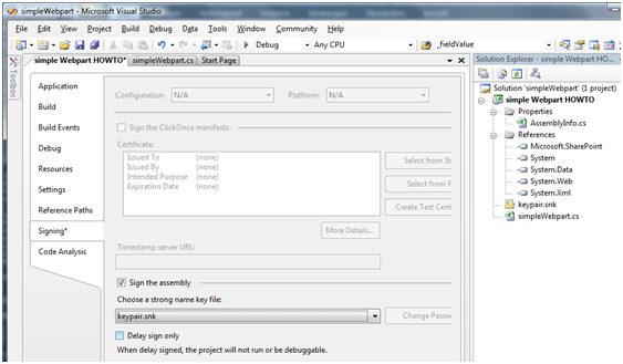sn -T “C:\PathToYourProject\bin\debug\simple Webpart HOWTO.dll”